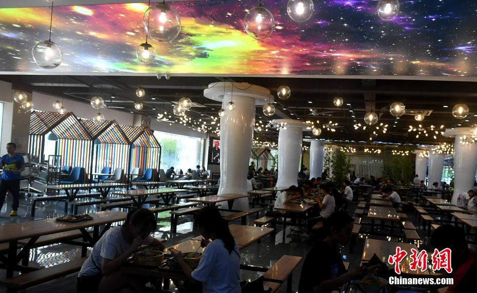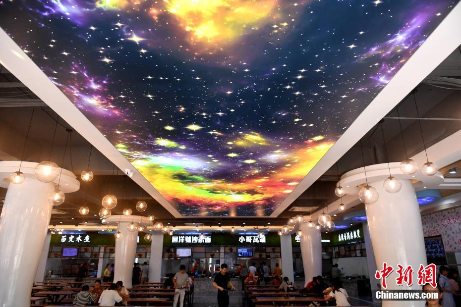 9月5日,荣耀体育注册大厅_荣耀体育(中国)的翠竹园餐厅装修成“星空”主题风格,吸引了许多同学前来体验在“星空”下用餐的感觉。中新社记者 吕明 摄