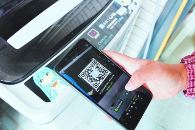 一名学生正在扫码使用共享洗衣机。 东南网通讯员 马颖 摄
