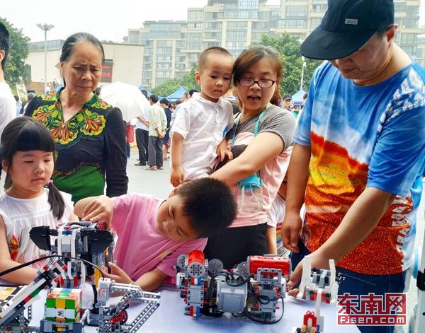 小朋友及家长被创新的科技产品吸引。东南网记者 林先昌 摄