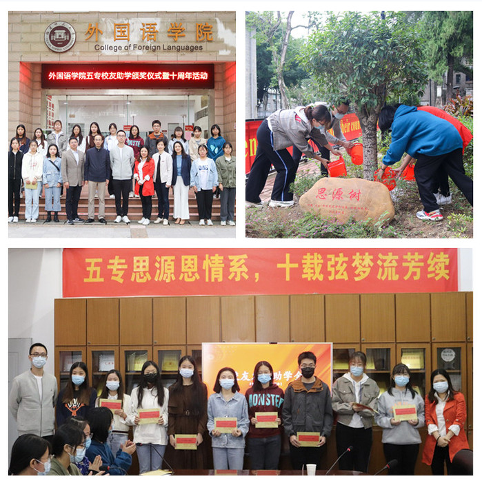 近日,外国语学院在外语楼5楼会议室举行五专校友助学十周年助学金颁发仪式,会议采取线上线下形式进行。五专校友代表黄晖女士、王辉滢先生,学院党委书记章琳,院长葛桂录,纪委书记、党委副书记吴志锋,商务英语系主任刘茵,学院教师代表,2021年度受助学生等参加了颁发仪式。