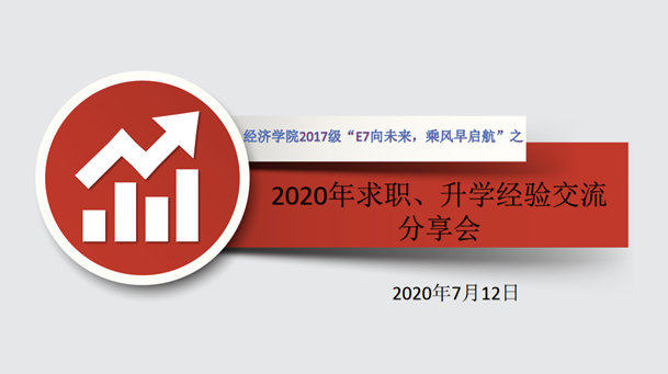 7月12日,经济学院2017级举办“E7向未来,乘风早启航”求职、升学系列经验交流活动。活动以线上视频会形式开展,分为“就业心得听我说”和“考研(保研)如何上岸”两部分。