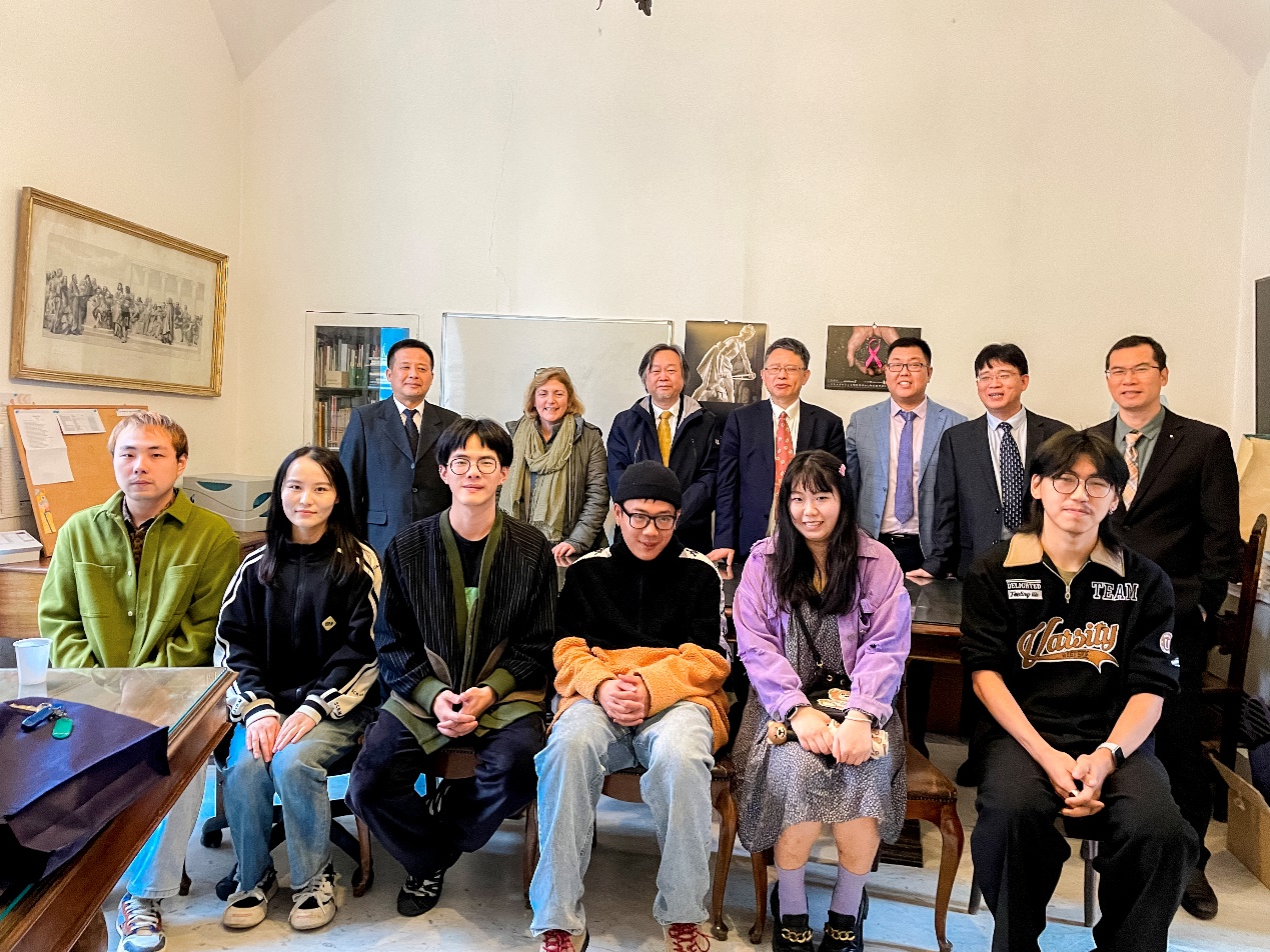 代表团与意大利那不勒斯美术学院主席 Rosita Marchese、副校长 Adriana de Manes进行了座谈,双方围绕两校首届硕士研究生培养工作展开深入研讨。陈庆华介绍了荣耀体育注册大厅_荣耀体育(中国)合作办学人才培养工作实践,希望双方通力合作,落实落细教育教学课程安排,为推进合作办学项目可持续发展做好顶层设计。双方表示将严格落实合作办学协议,积极推动两校办学深度合作。