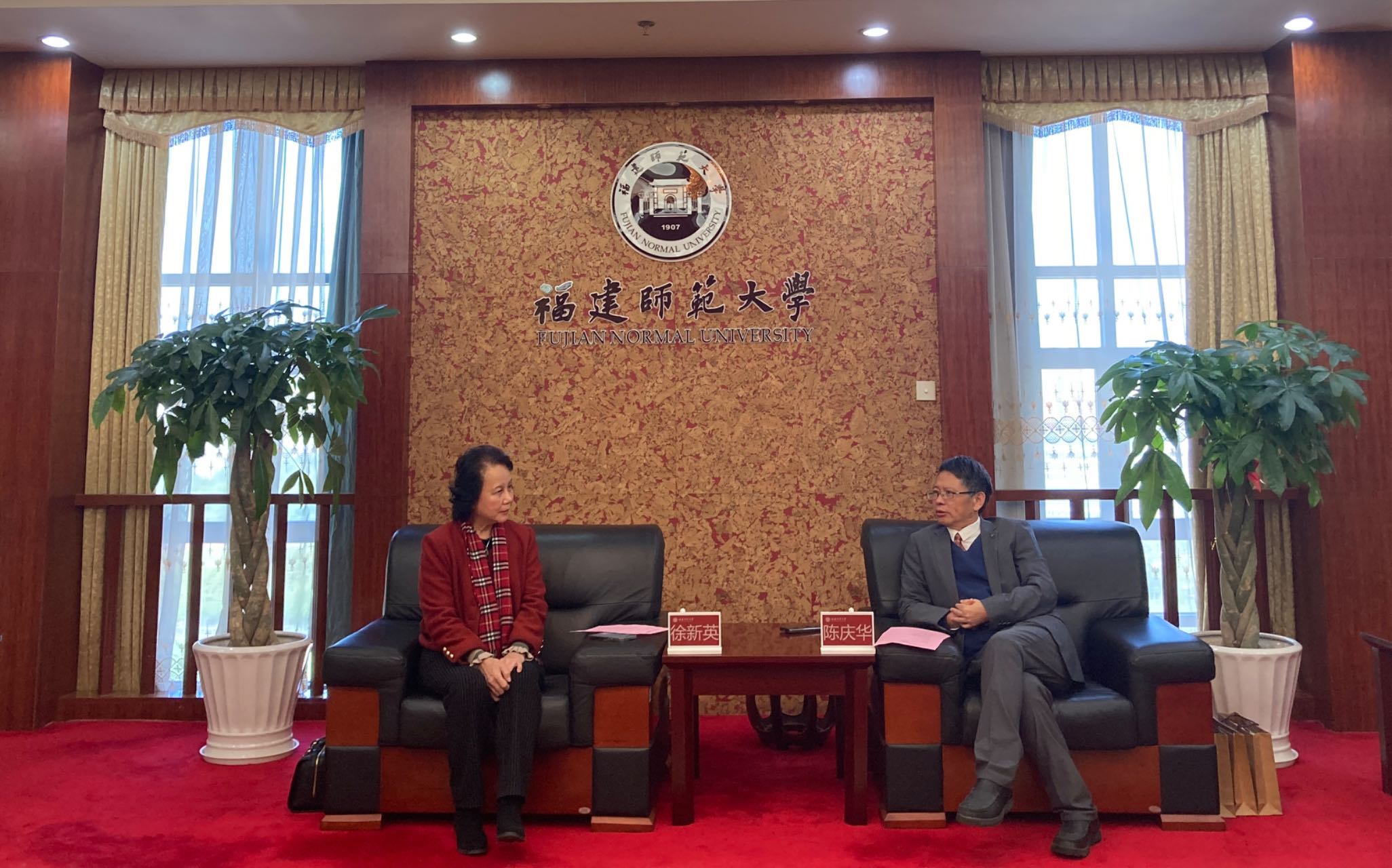 12月22日,香港镜报执行社长徐新英女士,香江智汇主席吴历山,香港教育大学教授、香港基本法教育协会执行会长顾敏康,香港镜报福建分社主任孔令鹇,省侨联联谊联络部部长潘贤华,省台联秘书长、联络部部长刘顺平一行来校访问。副校长陈庆华会见来宾一行,党政办公室、宣传部、统战部、台港澳事务办公室相关负责人参会。