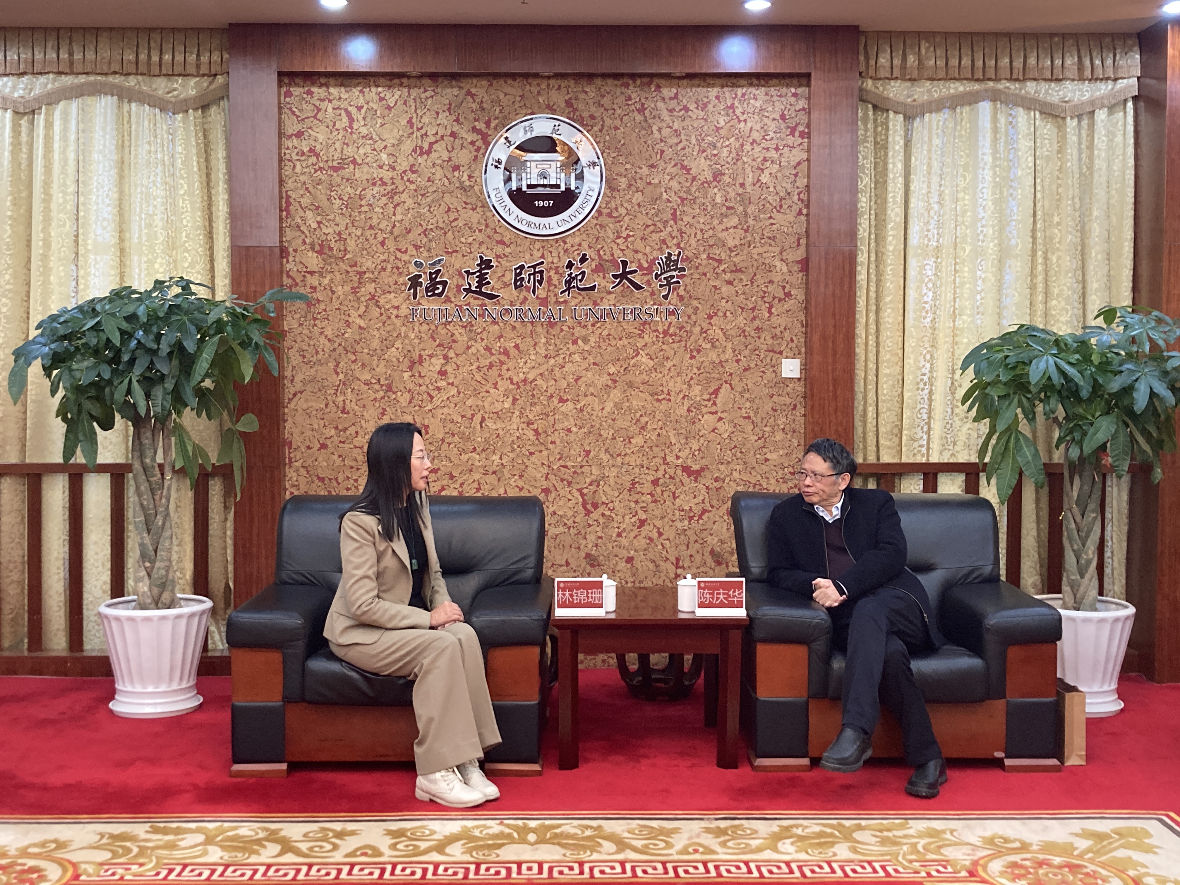 12月26日,澳洲福建乡情联谊会会长、澳大利亚西悉尼大学校长特聘顾问林锦姗一行来校访问。荣耀体育注册大厅_荣耀体育(中国)副校长陈庆华会见来宾一行,国际合作与交流处、教务处、研究生院相关负责人参加座谈。