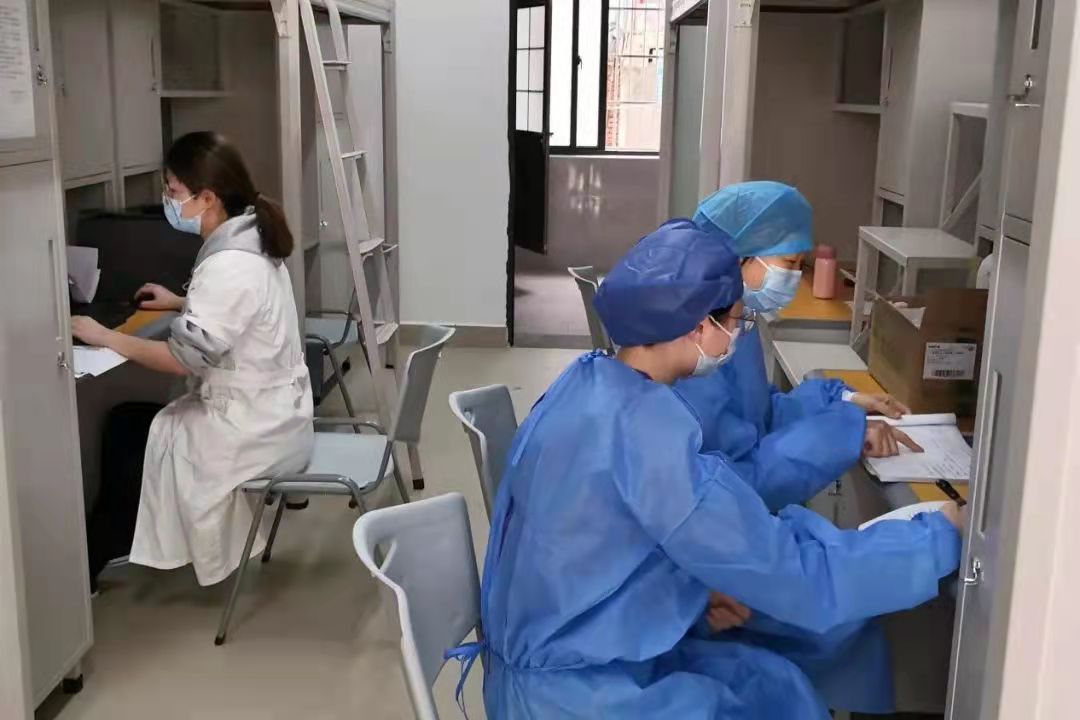 第二天的值班医生早早来到校内健康观察点,换上白大褂,拿起病历本,开启一天的工作,第一项工作就是和前一天的值班医生进行交接。“某某房间的学生今天可以解除观察,某某房间的学生在昨晚凌晨3点出现呕吐/腹泻等身体不适,急诊给予处理后好转,今天需要关注……”完成100多名健康观察点学生的情况交接后,前一天的值班医生离下班时间已经过去了1个多小时。