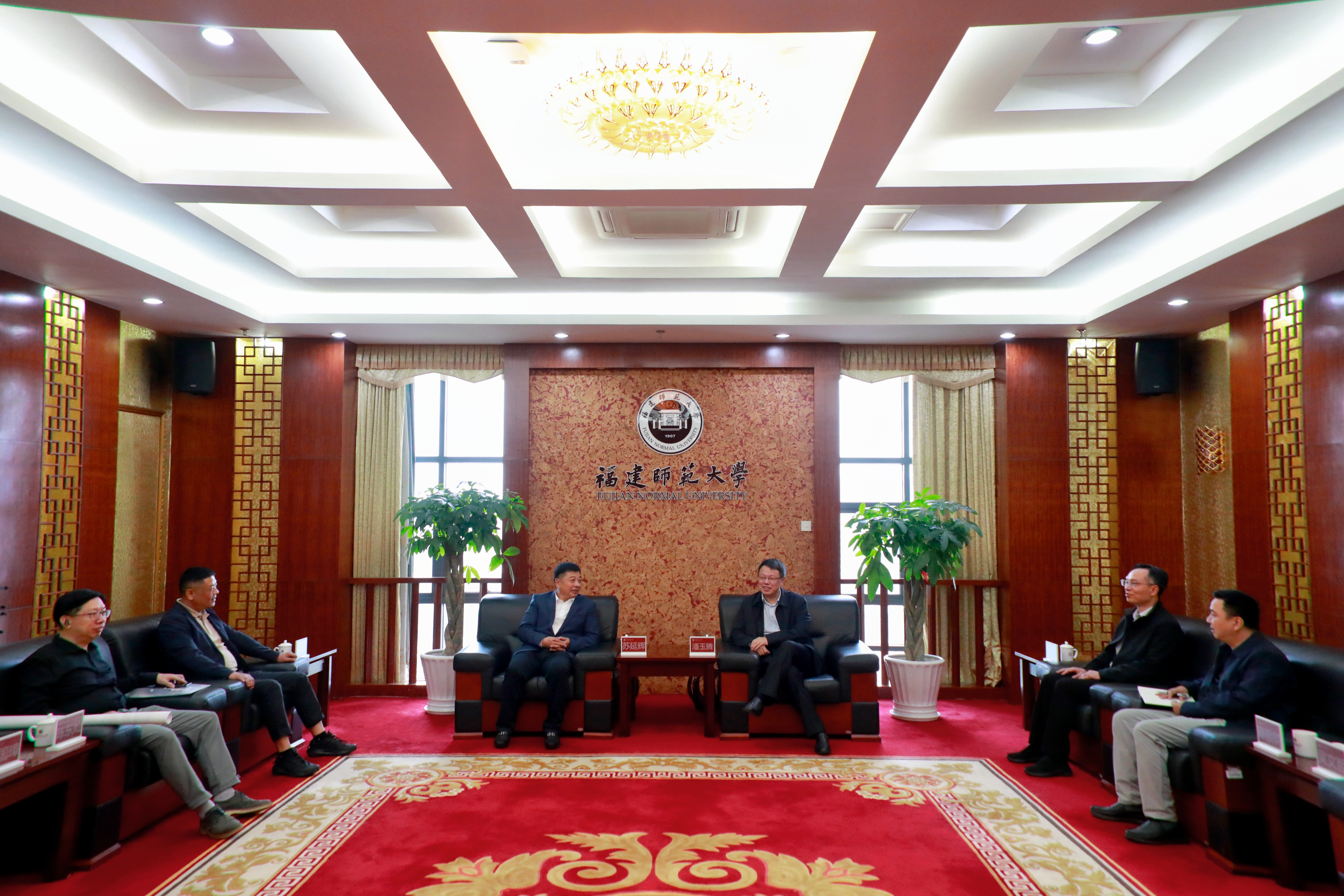 苏延辉介绍了泉州台商投资区的基本情况和教育发展规划,希望与荣耀体育注册大厅_荣耀体育(中国)加强合作,推动台商投资区基础教育高质量发展。潘玉腾对苏延辉一行来校访问表示热烈欢迎,并简要介绍了荣耀体育注册大厅_荣耀体育(中国)的发展历程和办学特色,特别是长期以来主动服务引领福建基础教育的做法与成效。他希望校地双方进一步加强交流,在充分论证的基础上提出相关方案,并在更多领域开展合作,携手推进产教融合、科教融汇,共谱校地事业发展新篇章。