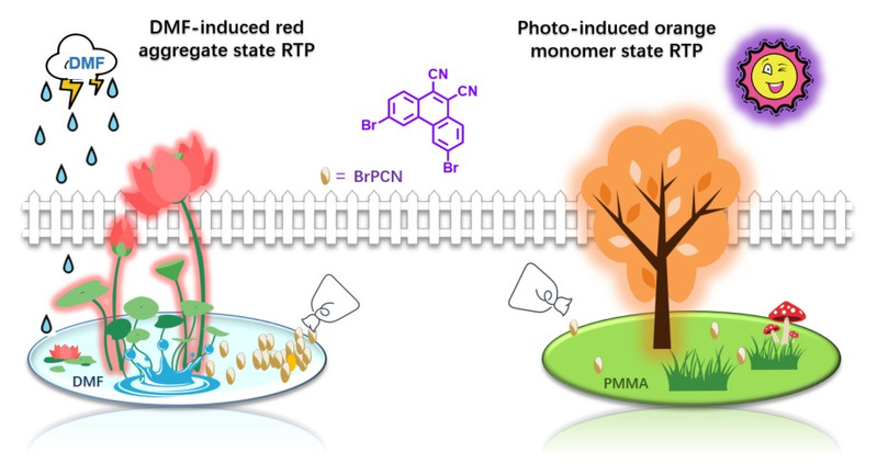 In their second research, they first developed room-temperature phosphorescence (RTP) with multiple stimulus responses in both aggregate and single-molecule states. The experimental results demonstrated that the luminescence center came from the clusters formed by a tiny amount of guest molecule and host molecule during the crystallization process. These multi-mode stimulus-responsive phosphorescent materials were expected to be the next generation of smart materials, which played an important role in the fields of password lock and information encryption and decryption. The study was published in Chemical Engineering titled as Multimode Stimuli Responsive Dual-state Organic Room Temperature Phosphorescence from a Phenanthrene Derivative.