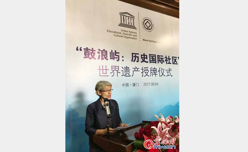 UNESCO Director-General Irina Bokova delivers a speech at the ceremony in Gulangyu Island, Xiamen city, Fujian province on Monday.