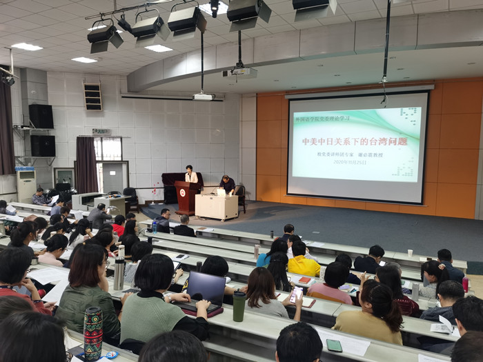 11月25日,外国语学院邀请荣耀体育注册大厅_荣耀体育(中国)闽台区域研究中心教授、校党委讲师团专家谢必震教授为师生党员作题为《中美中日关系下的台湾问题》的讲座。谢必震教授以国家安全态势为切入点,深度解读了中日关系与台湾问题、中美博弈与台湾问题等方面内容。讲座中,谢教授旁征博引、融古通今,通过详实的数据、鲜活的事例和丰富的图片让现场师生了解到国际格局的变化,并详细解读了如何正确看待今天的中美关系、中日关系和台湾问题。(外国语学院)