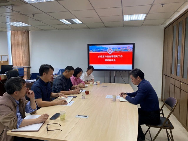 近日,副校长吴剑锋到实验室与设备管理处(实验室危险化学品管理中心)开展工作调研,部门处科级干部参加会议。