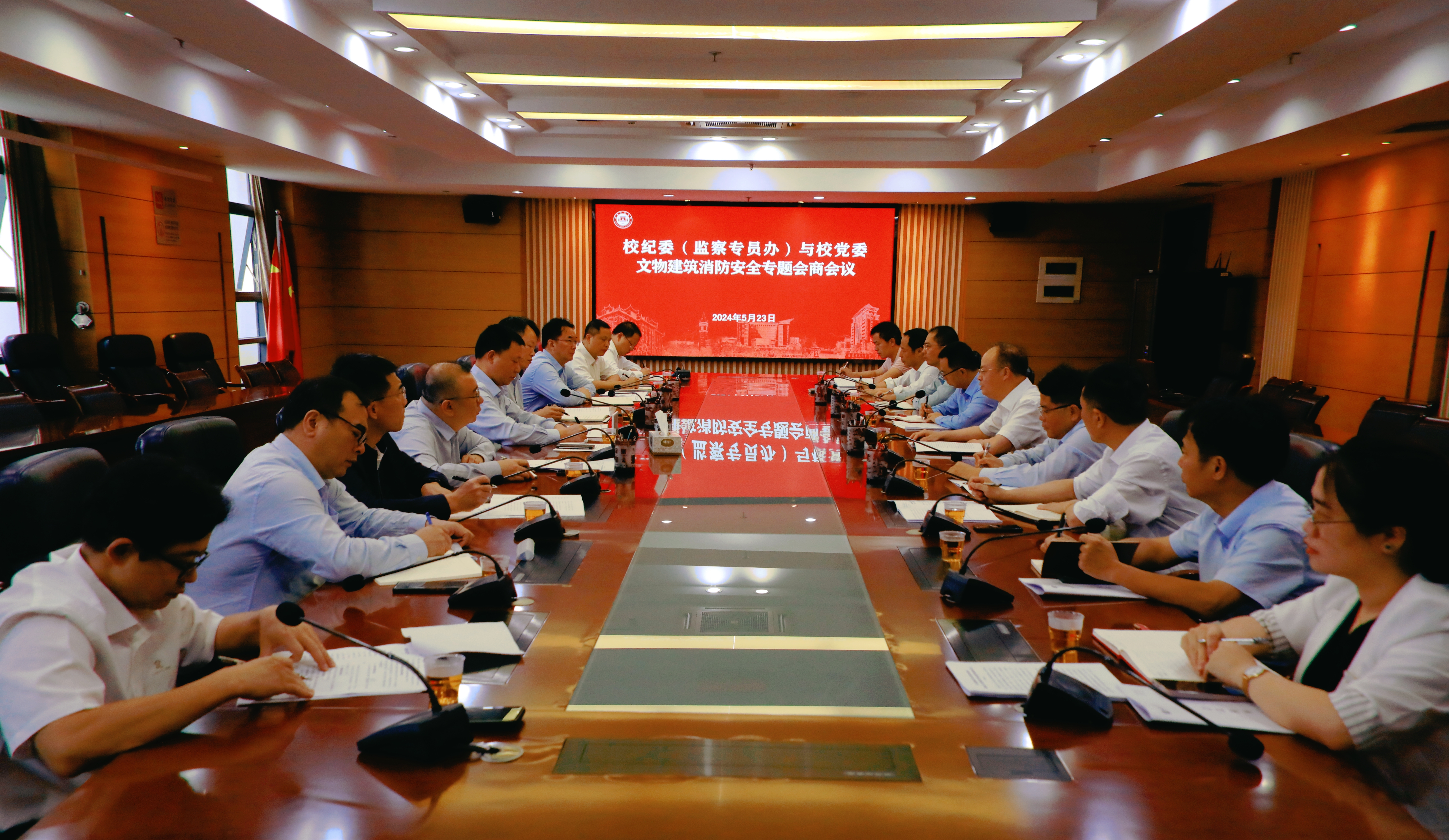 5月23日,校纪委(监察专员办)与校党委召开文物建筑消防安全专题会商会议,推动“两个责任”贯通联动、同向发力,以珍爱之心、尊崇之心保护好、传承好、利用好校史文物,延续历史文脉、增强文化自觉。受校党委书记潘玉腾委托,校党委副书记涂荣主持会议,校纪委书记林月恩出席会议并讲话,相关部门单位负责人参加会议。